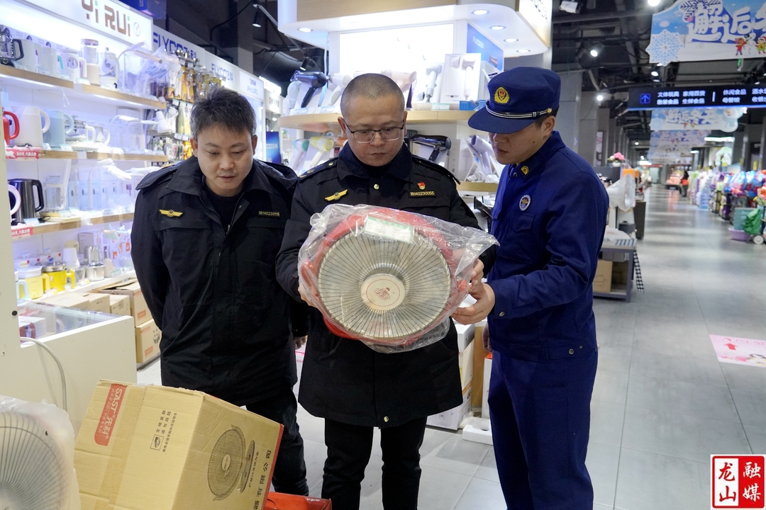 在世纪华联超市,执法人员现场查看电取暖炉、固体蜡、燃气炉等产品的标签标识和有效期,仔细检查其产品质量是否符合国家相关标准,是否存在销售假冒伪劣产品行为,并认真查看了消防设施设备是否齐全,与超市相关负责人进行了交流,详细了解了市场供应、产品安全等情况。