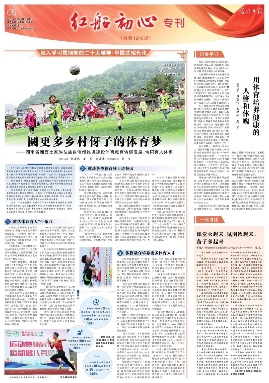 2023年9月20日,《光明日报》刊发了湘西州推动形成体教协调发展、协同育人发展模式的文章。