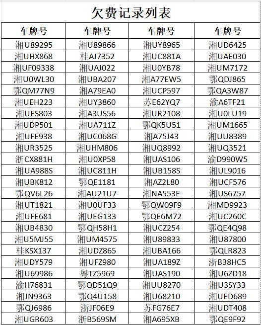 现将部分欠费车辆信息予以公示,请欠费车主及时补缴停车欠费,以免可能给您造成不必要的法律纠纷。