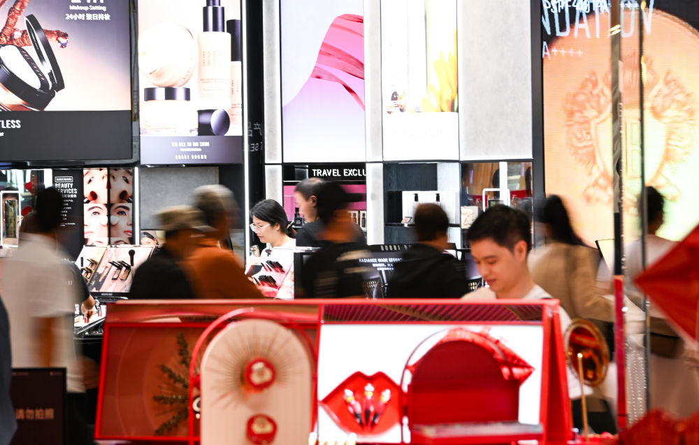 2023年10月28日,消费者在位于海南省海口市的海口国际免税城内购物。新华社记者杨冠宇 摄