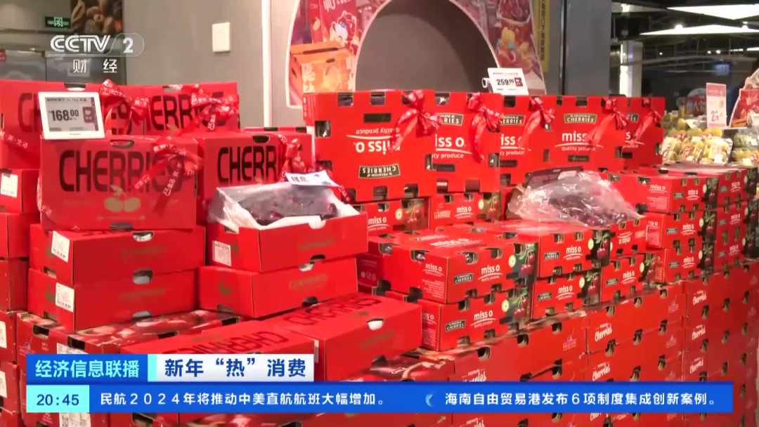 北京新发地批发市场的统计数据显示,随着海运车厘子陆续到货,车厘子的价格稳步快速下降,2023年12月31日,智利进口车厘子平均售价为每斤60元。相较于2023年11月10日平均价每斤120元,价格已下降一半,销量也随之大幅增加。