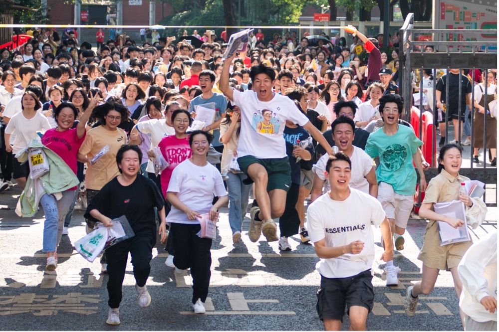 2023年6月9日,在长沙市第一中学考点,考生在高考结束后庆祝。当日,全国部分地区2023年高考结束。