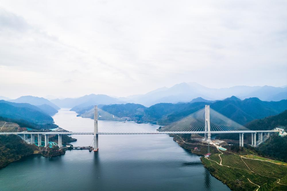 这是2023年12月19日拍摄的官新高速雪峰湖大桥(无人机照片)。当日,湖南省境内的官新高速公路正式开通,对完善区域路网,构建湘鄂桂黄金旅游大通道,促进沿线地区经济社会发展具有重要意义。