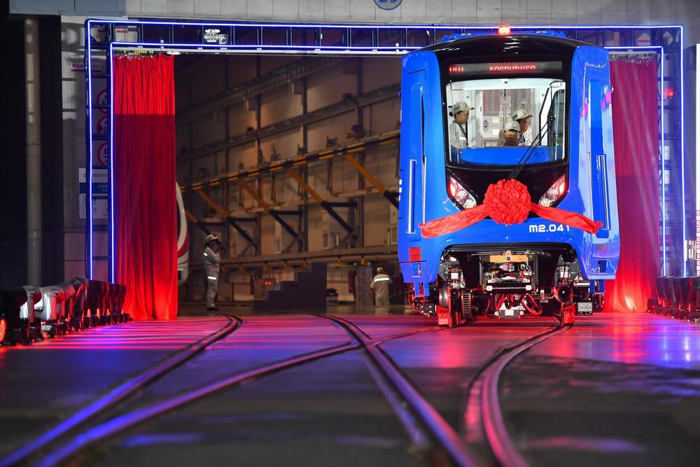 2023年9月9日,中车株机公司工作人员在中国中车出口墨西哥城轻轨列车首列车内进行巡检。当日,“中国造”首列出口墨西哥城轻轨列车在湖南株洲下线。