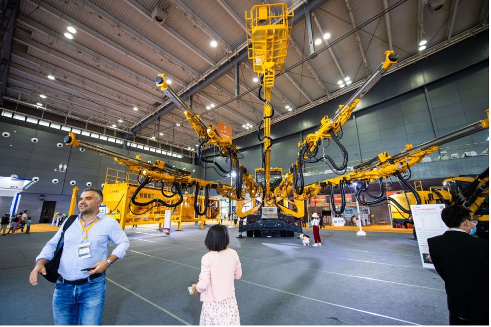 2023年5月15日,在长沙国际会展中心,观众在参观展出的工程机械设备。第三届长沙国际工程机械展览会吸引了全球1502家企业参展。展会现场交易额累计536亿元。