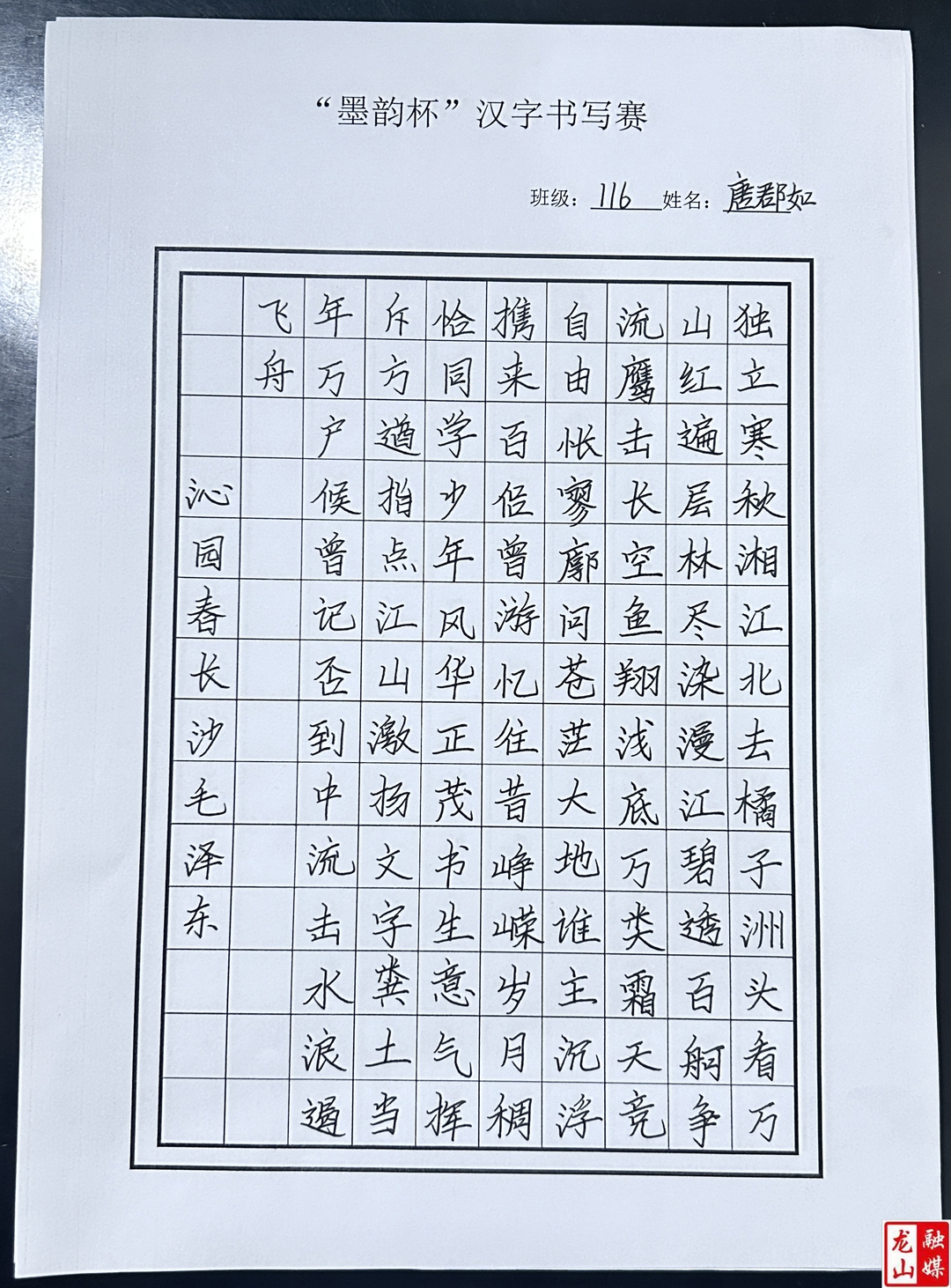 本次比赛分为两个阶段,前期由各班级自行准备预赛,后期统一进行决赛。决赛过程中,赛场气氛紧张而有序,选手们握笔正确,下笔如有神,用心书写每一个笔画、每一个汉字,评委老师公平公正的从书写工整、页面整洁、字体结构端稳美观、平正匀称、点画形态几个方面评估比赛作品,经过评比后,分别评出一等奖5名、二等奖10名、三等奖15名。