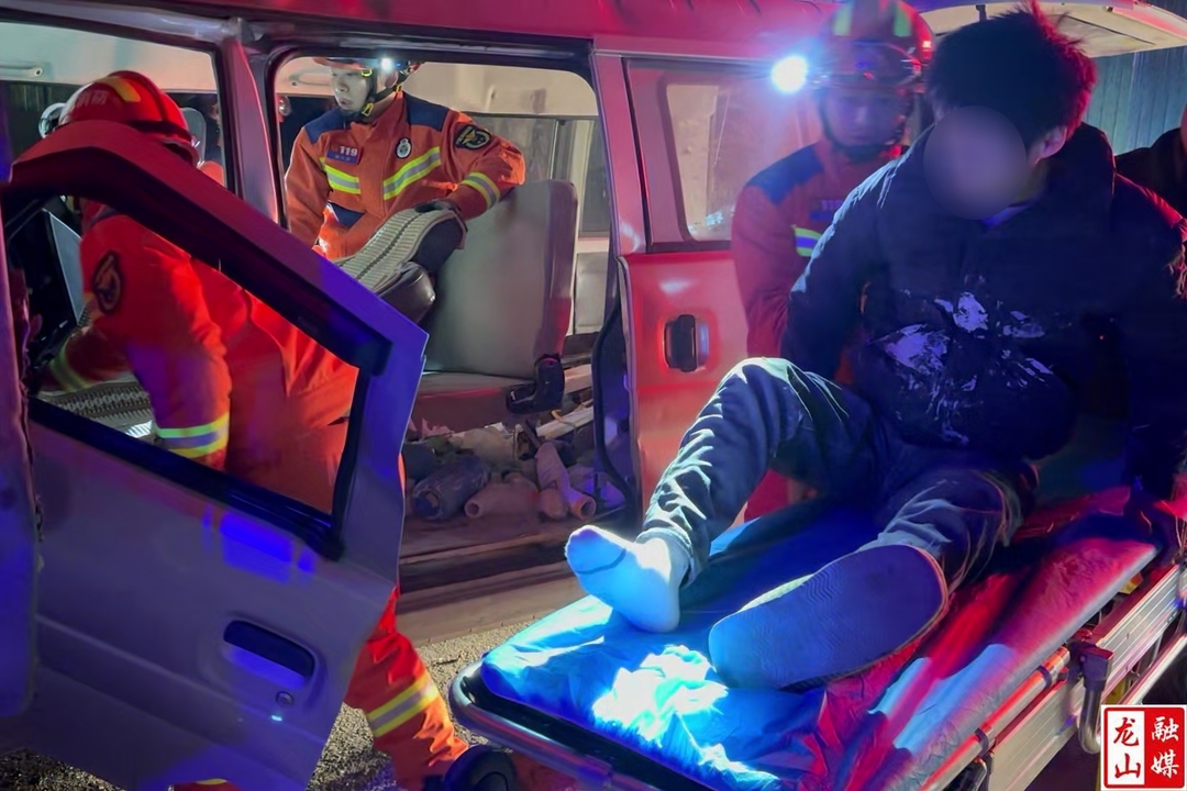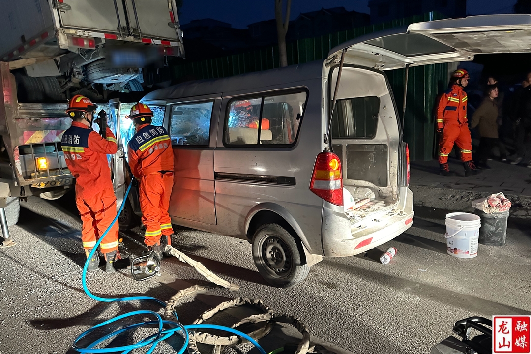 龙山县融媒体中心1月31日讯(通讯员 田媚)1月30日18时37分,龙山县老城路附近,一辆面包车与一辆大货车发生追尾,导致面包车驾驶人员被困,急需救援。接到报警后,县消防救援大队迅速出动,赶赴现场实施救援。