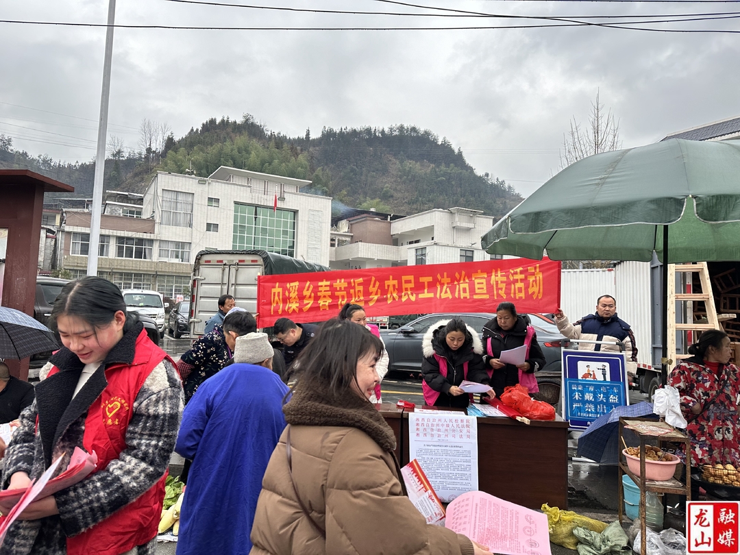 龙山县融媒体中心21日讯(通讯员  吴浪 彭新元)2月1日,内溪司法所联合乡平安办、禁毒办、妇联执委、大学生志愿者开展春节期间法治宣传活动。