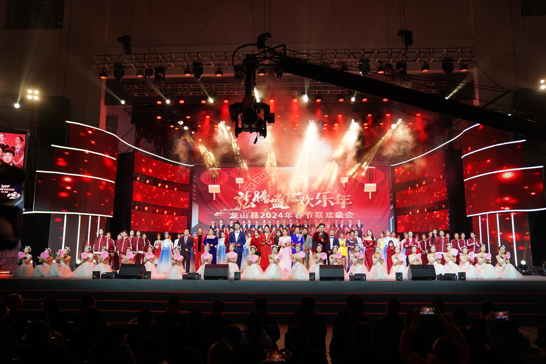 2月1日精彩上演的龙山县2024年春节联欢晚会,由中共龙山县委、县人民政府主办,龙山县委宣传部和县融媒体中心承办,共有演职人员400多人,涉及公职人员、艺术学校、民间艺人、非遗传承人、社会团体等,经过60个日日夜夜的紧张工作,从筹备到演出,从台前到幕后,在该县县委办公室、县政府办公室、县委政法委等30多个单位的密切配合、通力合作下,为全县人民奉上了一场欢乐、喜庆、祥和的春节视听盛宴,呈现了新时代龙山人民昂扬向上的精神风貌。