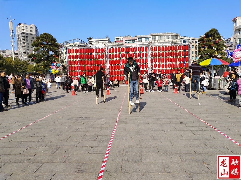 龙山县融媒体中心2月11日讯(记者 刘润)春节期间,一年一度的春节系列文化活动开启,喜悦祥和的气氛弥漫于万物之间。在县龙凤广场,气温回升暖阳高照,滚铁环、踩高跷、跳绳等各种民俗表演和比赛如火如荼的上演。在游客们阵阵掌声和欢呼声中,重温童年记忆,体验传统文化的魅力,营造出浓浓的节日气氛。