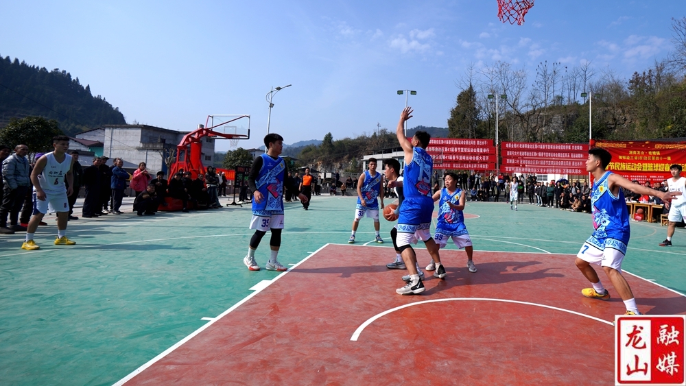 龙山县融媒体中心2月12日讯(记者 张前)2月12日,湖南龙山·桂塘镇湘鄂渝三省(市)边区第四十一届春节民族运动会暨篮球迎春杯活动火热进行中,来自湖南省龙山县桂塘镇、湖北省来凤县百福司镇、重庆市酉阳县大溪镇等三省(市)边区的16支村级球队参与角逐,为当地群众带来一次酣畅淋漓的文化体育盛宴。