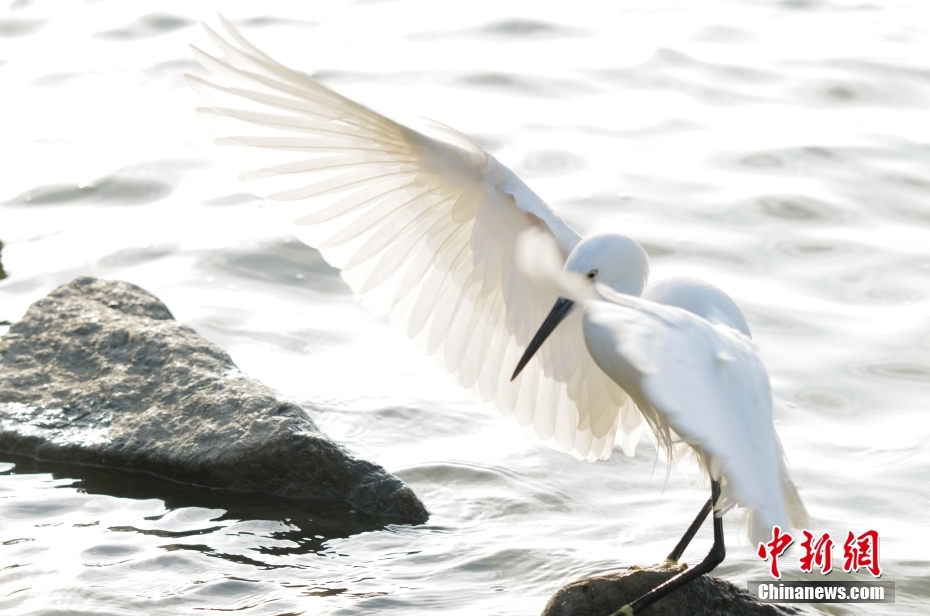 深圳海滨生态公园的白鹭展翅。中新社记者 陈文 摄