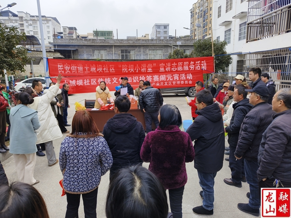 龙山县融媒体中心2月26日讯(记者 向宇  通讯员 张金玲 彭琼)2月26日,县产业开发区在土城坝社区易地搬迁安置区开展党员干部进社区暨乡村振兴元宵节传统文化知识抢答赛活动。