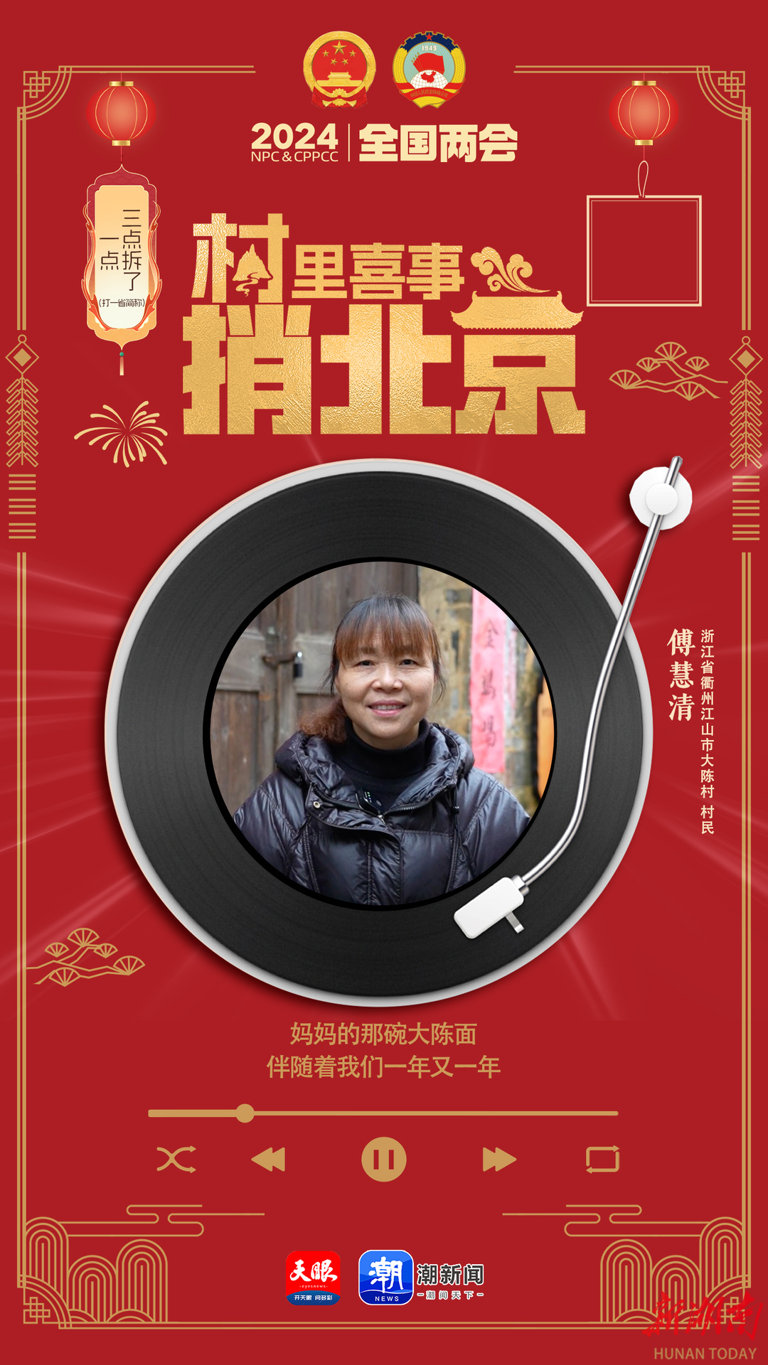 把村里的喜事捎上北京。全国两会前夕,湖南日报与贵州日报、浙江日报、辽宁日报联动,分别派出记者在湖南十八洞村、贵州化屋村、浙江大陈村、辽宁孙家村蹲点采访,带来村里基础设施、村容村貌、产业发展、百姓精神面貌等焕然一新的喜讯。