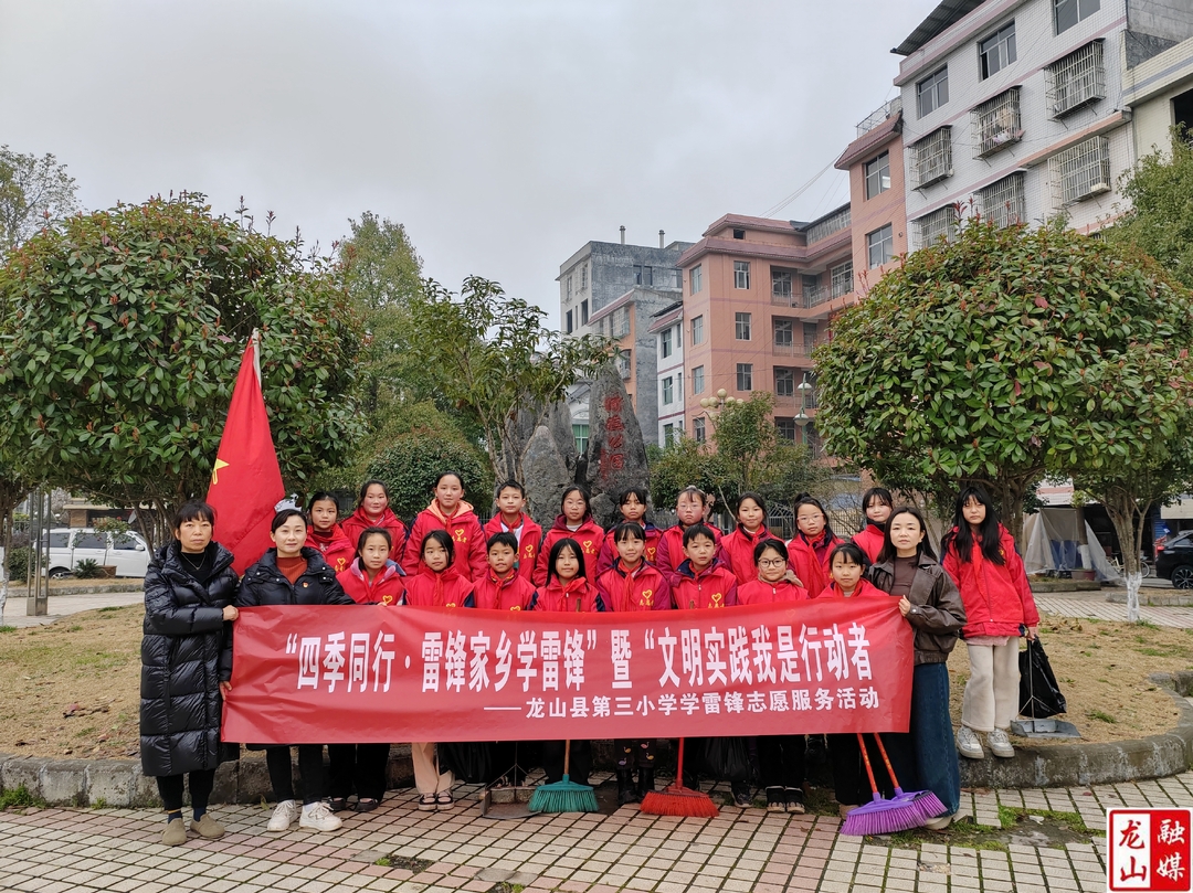 龙山县融媒体中心3月8日讯(通讯员 王纪全 肖银莲)3月7日,第三小学19名少先队志愿者,在老师的带领下,携带垃圾袋、扫帚、火钳等工具,走进三桥社区,进行环境卫生大扫除。