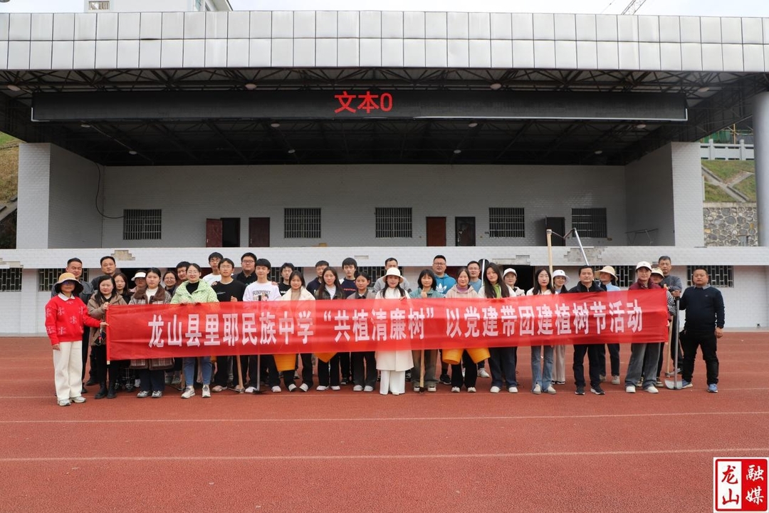 龙山县融媒体中心3月12日讯(通讯员 郭绍兴 田滢熔)3月12日下午,里耶民族中学开展“共植清廉树”以党建带团建植树节活动。学校党支部全体党员、领导班子成员、优秀团干和团员以实际行动植廉于心,倡廉于行。