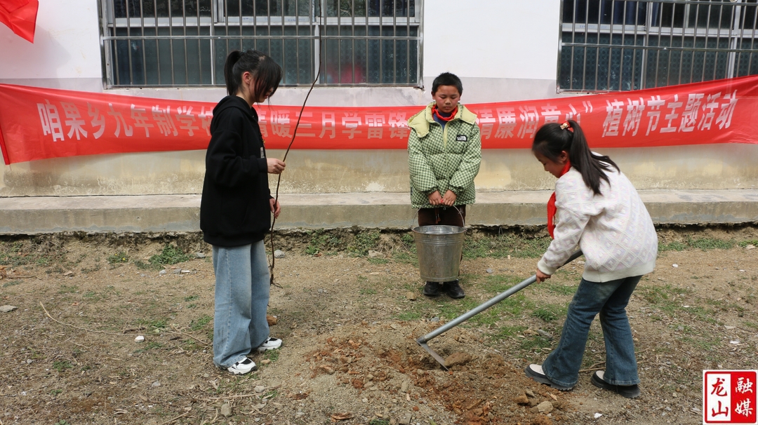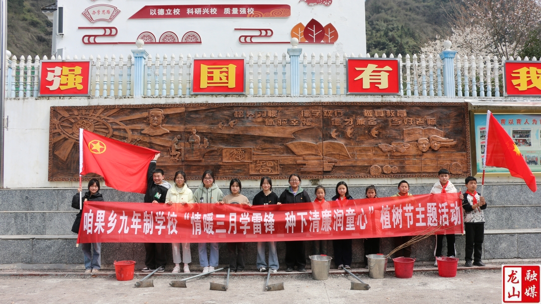 龙山县融媒体中心3月13日讯(通讯员 彭凡育 杨啸黎 王小玲)3月12日,咱果乡九年制学校开展“情暖三月学雷锋 种下清廉润童心”植树活动,提高师生生态环保意识及团结协作能力,助力清廉学校建设。