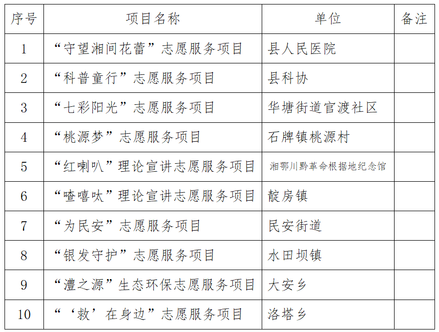 龙山县首届新时代文明实践志愿服务项目大赛决赛入围名单公示