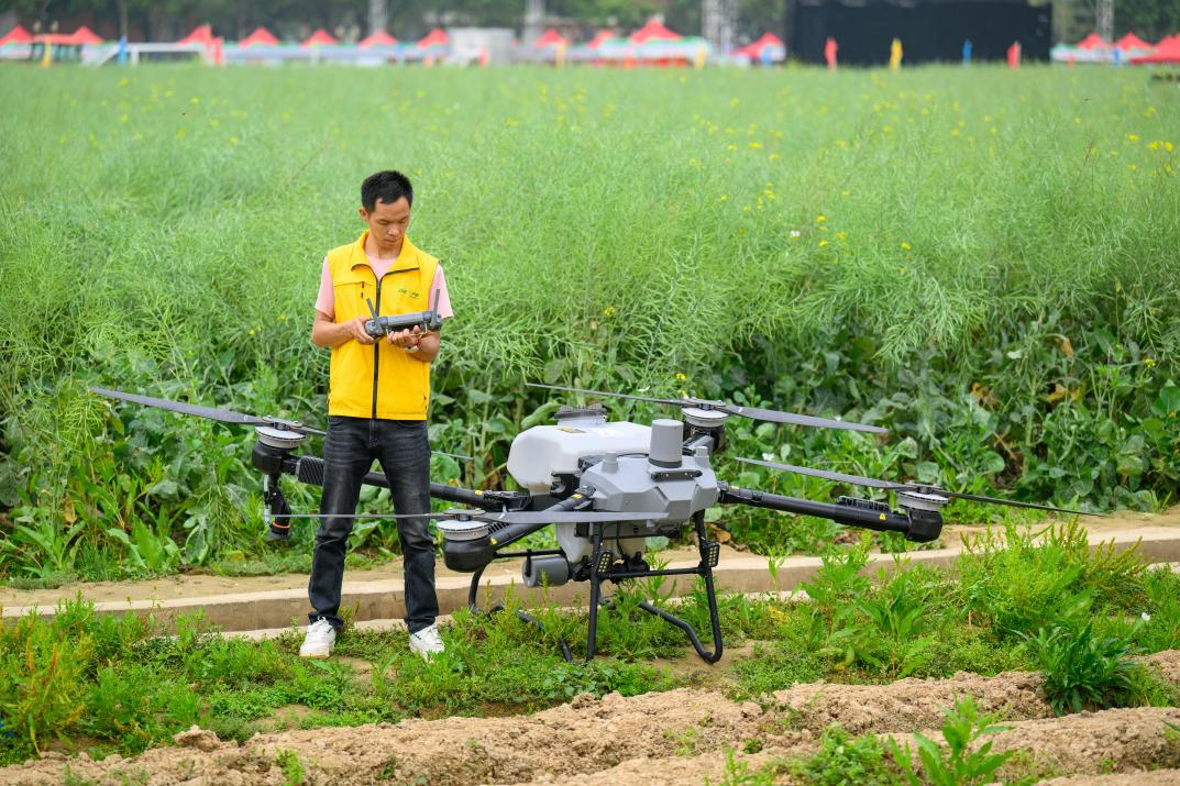 △ 2024年3月18日,广东省东莞市石碣镇掀起春耕生产热潮。图为一名工作人员正在操作无人机。