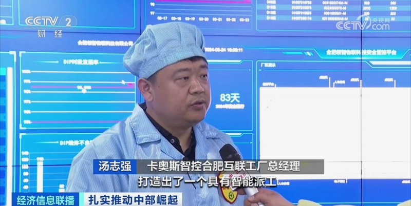 卡奥斯 智控 合肥互联工厂总经理 汤志强: 它是通过1.5亿片的生产量,结合AI的深度算法打造而成的,质检的误报率可以降低至0.3%。