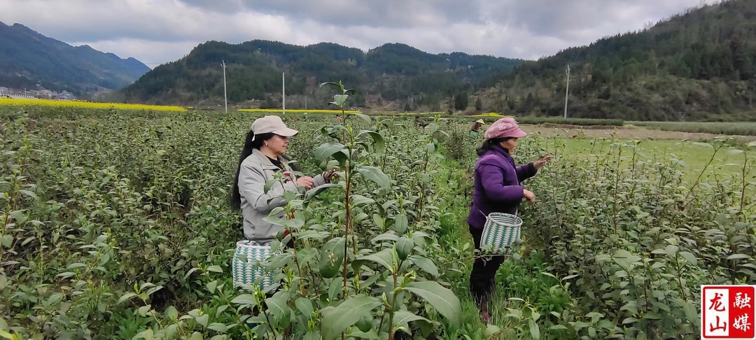 龙山县融媒体中心3月26日讯(通讯员 李羽杰)3月26日,靛房镇比寨村茶叶基地正式开采头茶,采茶工人正弯着腰用一双双巧手提采鲜叶。她们穿梭在茶垄中,熟练地将嫩叶放入竹篓。