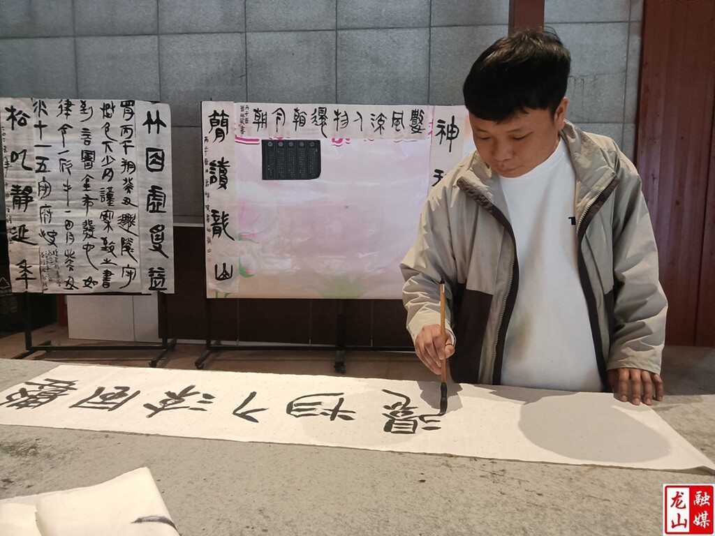 仪式上,龙山县的“克佩书法”“迁陵画苑”“明德艺术”“子初阁”“无花萧坊”“盘子摄影”等文艺组织的主理人积极发言,结合深度发掘里耶秦简的历史文化价值,阐述了“文物考古+文艺创作”“文旅研学+文艺采风”等融合发展的路径与探索。县文艺界人士向与会领导嘉宾介绍了里耶秦简文化IP的文创故事,紧扣里耶秦简记载的“九九表”“迁陵以邮行洞庭”“迁陵地势美”等,现场创作展示了30余幅里耶秦简的软笔硬笔书法作品、50余幅里耶古镇美术写生作品、10余首中国传统洞箫曲目。