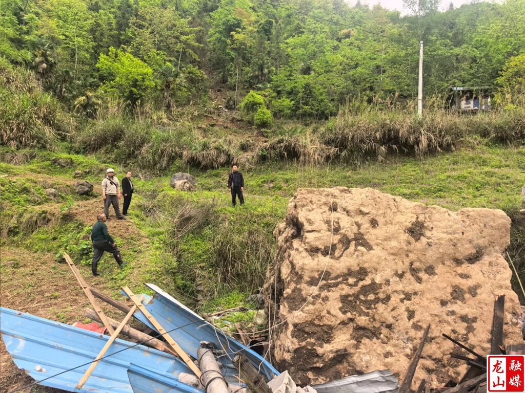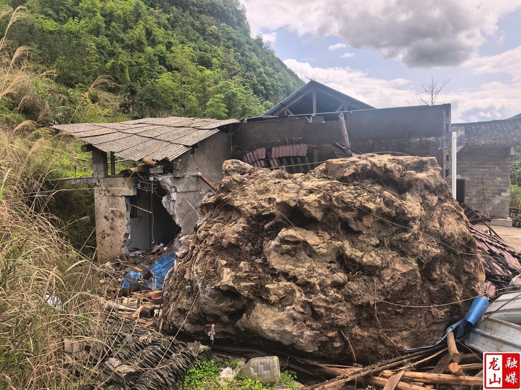 龙山县融媒体中心4月24日讯(记者 刘润 通讯员 彭程祥) 4月入汛以来,龙山县遭遇多轮持续性强降雨天气。4月21日傍晚,受强降雨影响,靛房镇吾拉村发生一起山石滚落险情。一块巨石从山坡滑落,砸穿村民严平孝家的房屋。由于当地组织转移及时,多部门联合赶往现场紧急处置险情,未造成人员伤亡。